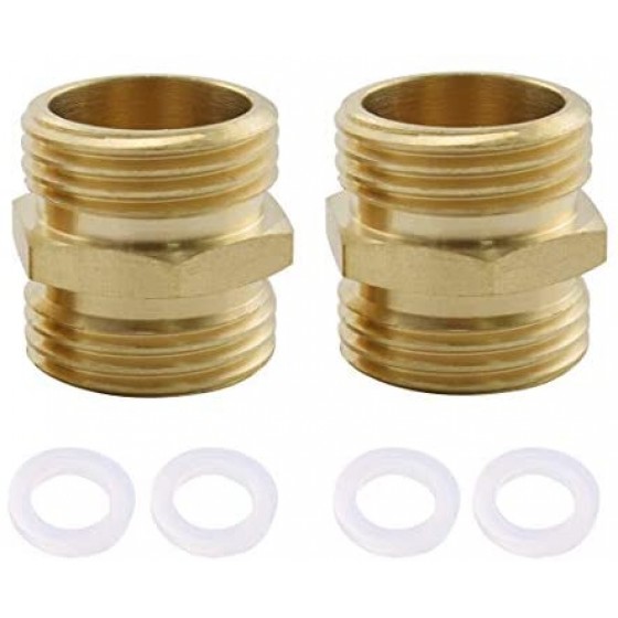 2-Pack Brass Garden Hose Fitting Adapter 3/4inch to 3/4inch Double Male Thread Quick Connector