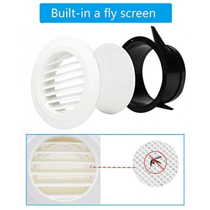 6 Inch Round Air Vent ABS Louver Grille Cover with Built-in Screen Mesh Detachable Soffit Air Exhaust Vent for Bathroom Kitchen Bedroom Office