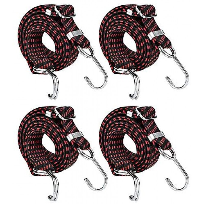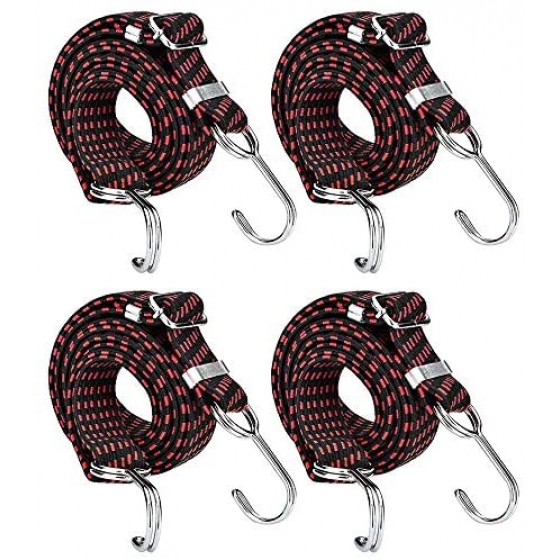 80 Inch Adjustable Flat Bungee Cords with Hooks | 4-Pack Superior Latex Heavy Duty Straps with Length Adjustment Metal Buckle