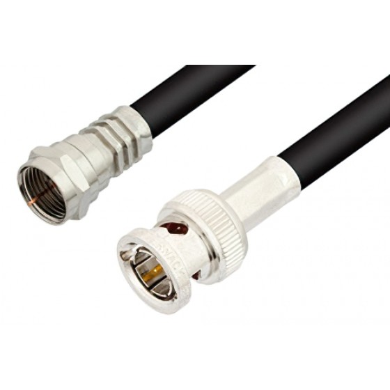 Radio frequency assembly 75 Ohm F male to 75 Ohm BNC male cable 12 inch length using 75 Ohm ET-RG59 coax, RoHS from Ebeestock is part of the largest selections of same-day ship coaxial cables for RF, microwave and millimeter wave interconnect solutions. Ebeestock coaxial cable assembly products are used in applications requiring high quality such as laboratory RF test and measurement, rugged and designed for defense / military, telecom antenna tower component jumper connection, production environments, general use, etc. 75 Ohm F male to 75 Ohm BNC male cable 12 inch length using 75 Ohm ET-RG59 coax, RoHS, like our other Ebeestock coaxial cable assemblies, will ship the same day and any custom type F to BNC cable assembly orders will ship same day as well.