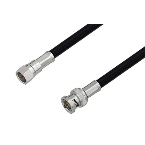 Ebeestock RF coax cable assembly is built with type F cable connection on one end and BNC cable connection on the other. Our type F to BNC cable assemblies have a male gender on end 1 and male on end 2. This F type to BNC cable is a male to male coax assembly, ET18788, can also be known as a type F plug to BNC plug cable assembly and will be shipped same-day as it is purchased.