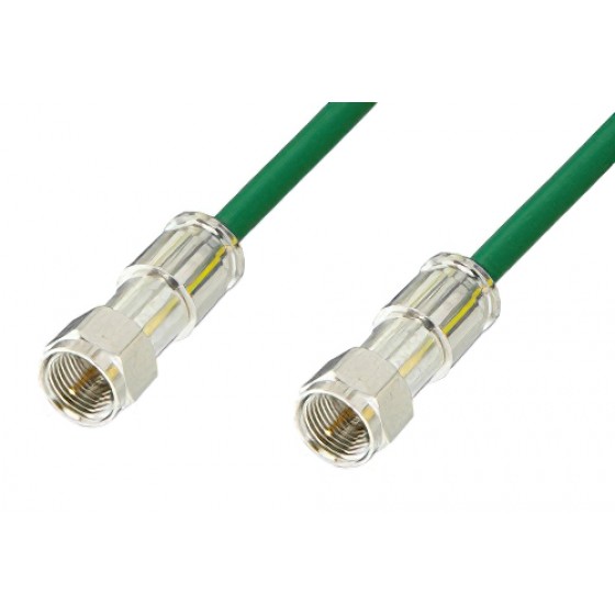Radio frequency assembly 75 Ohm F male to 75 Ohm F male cable 12 inch length using 75 Ohm ET38347 green coax from Ebeestock is part of the largest selections of same-day ship coaxial cables for RF, microwave and millimeter wave interconnect solutions. Ebeestock coaxial cable assembly products are used in applications requiring high quality such as laboratory RF test and measurement, rugged and designed for defense / military, telecom antenna tower component jumper connection, production environments, general use, etc. 75 Ohm F male to 75 Ohm F male cable 12 inch length using 75 Ohm ET38347 green coax, like our other Ebeestock coaxial cable assemblies, will ship the same day and any custom type F to F type cable assembly orders will ship same day as well.