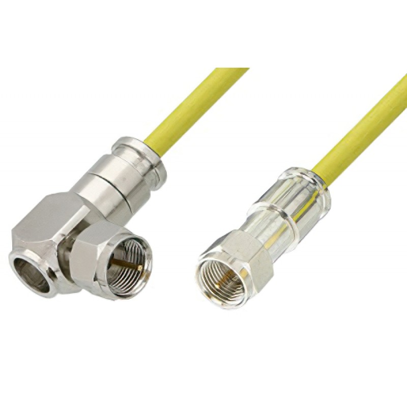 75 Ohm F Male to 75 Ohm F Male Right Angle Cable 12 Inch Length Using 75 Ohm ET38344 Yellow Coax