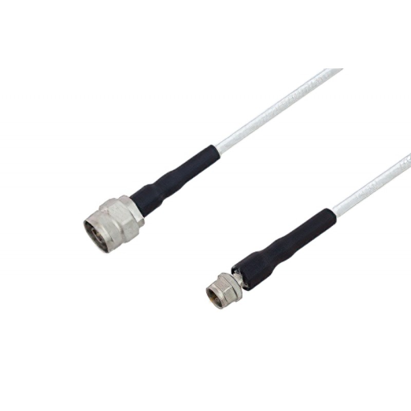 Ebeestock RF coax low loss cable assembly is built with type N cable connection on one end and type F cable connection on the other. Our low loss N type to type F cable assemblies have a male gender on end 1 and male on end 2. This type N to type F cable is a male to male coax assembly, ET21794, can also be known as a low loss type N plug to F type plug cable assembly and will be shipped same-day as it is purchased.