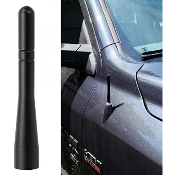 - Optimized Short Antenna Replacement for Off-road Vehicles and Trucks with Hood Mounted Antennas; Dimensions: 4 inch / 100mm Length; Package list: 1 x Antenna, 7 x Different Size Screw Bolts, 1 x Rubber Rings;