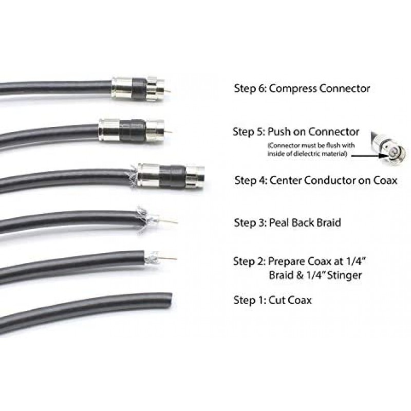 - Designed for standard ?prepared coax tip' of 1/4" braid and 1/4" exposed center conductor - use with any standard 21mm compression tool (Ebeestock tool is recommended, but not required)
