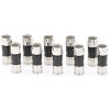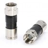 Ebeestock, A Family Company located in the USA, is proud to offer these high quality and durable coaxial compression connectors, also known as coax fittings. Compression F81 Connectors, using the F-Pin connection (standard on US Cable systems). Compression Connectors are superior to Crimp and Twist, as they create a waterproof seal at the rear of the connector (the jacket side), and allow a uniform 360 degree connection that keeps the connector on, and the signal tight. Rated from 2MHz 3GHz, this ensures that the coupler will handle all of the signals for DIRECTV, Satellite Dish, other Satellite, CATV (including Comcast, Charter, Cox, and more), as well as Antennas, VCRs, Cable Internet Modems, and other digital and analog systems. These will pass signal for 75Ohm coax wires. The connector works with most RG6 Coax, including Dual Shield, Tri Shield, and Quad Shield. Exceptional return loss and insertion loss specifications. Shielding effectiveness is greater than -90dB. Tests Passed: SCTE-103-2004 (DC Contact Resistance); ANSI/SCTE 60-2004 (Moisture Migration Test); ASTM-B117-03 (Salt Spray Test); ANSI/SCTE-99-2004 (Axial Pull Test); SCTE-98-2004 (Tightening Torque); SCTE-73-2002 (Coaxial Insertion Force); SCTE-48-3-2004 (Shielding Effectiveness); ANSI/SCTE-04-1997 (F Connector Return Loss); SBCA Standards of Physical Dimension Tolerance; and GR-1503-Core, Issue 1, March 1995 (UV Degradation). Connector works with all 21mm "closed" gap tool. We back our product 100%, with easy returns, as well as free technical and customer support.
