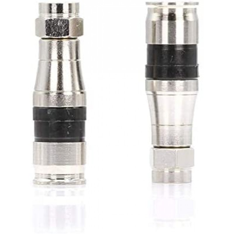 Ebeestock, A Family Company located in the USA, is proud to offer these high quality and durable coaxial compression connectors, also known as coax fittings. Compression F81 Connectors, using the F-Pin connection (standard on US Cable systems). Compression Connectors are superior to Crimp and Twist, as they create a waterproof seal at the rear of the connector (the jacket side), and allow a uniform 360 degree connection that keeps the connector on, and the signal tight. Rated from 2MHz 3GHz, this ensures that the coupler will handle all of the signals for DIRECTV, Satellite Dish, other Satellite, CATV (including Comcast, Charter, Cox, and more), as well as Antennas, VCRs, Cable Internet Modems, and other digital and analog systems. These will pass signal for 75Ohm coax wires. The connector works with most RG11 Coax, including Dual Shield, Tri Shield, and Quad Shield. Exceptional return loss and insertion loss specifications. Shielding effectiveness is greater than -90dB. Tests Passed: SCTE-103-2004 (DC Contact Resistance); ANSI/SCTE 60-2004 (Moisture Migration Test); ASTM-B117-03 (Salt Spray Test); ANSI/SCTE-99-2004 (Axial Pull Test); SCTE-98-2004 (Tightening Torque); SCTE-73-2002 (Coaxial Insertion Force); SCTE-48-3-2004 (Shielding Effectiveness); ANSI/SCTE-04-1997 (F Connector Return Loss); SBCA Standards of Physical Dimension Tolerance; and GR-1503-Core, Issue 1, March 1995 (UV Degradation). Connector works with all 21mm "closed" gap tool. We back our product 100%, with easy returns, as well as free technical and customer support.