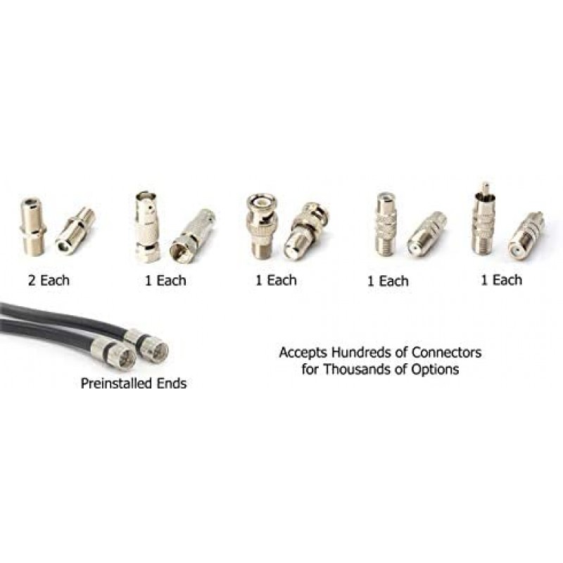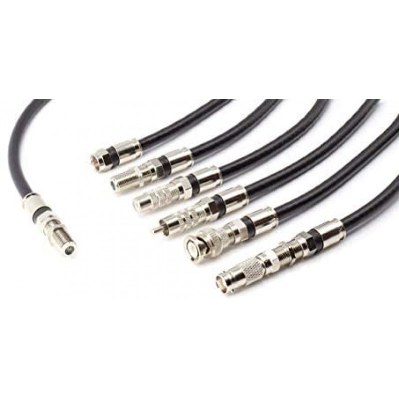 This universal coaxial cable & adapter set provides a convenient and seamless connection for an assortment of digital audio, video, and data connections. Featuring an RG-6/U coax cable with an exclusive combination of (6) RCA, BNC, and F81 (RF) couplers, you now have the perfect collection of connectors to suit your installation needs.