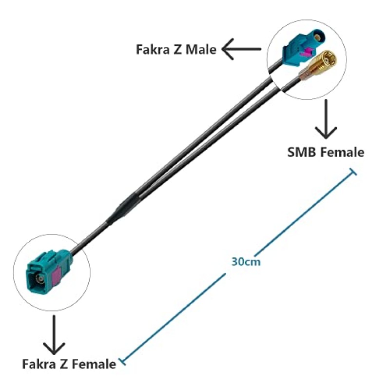 Product Name: Fakra Z Female to Fakra Z Male to SMB Female Adapter Splitter Cable RG174 30cm ;