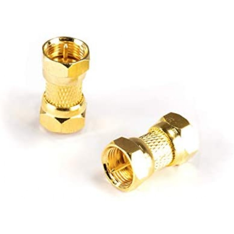 Gold Cable Extension Coupler for Coaxial Cables - 10 Pack - F81 (Male to Male) 3GHz Satellite, Cable TV, and Cable Internet Rated