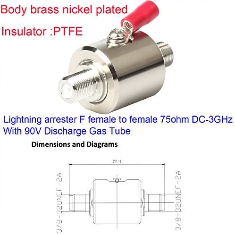 • 1.Lightning arrestor,with F-female Connectors 75 ohm in two side, Similar to 859992 75 Ohm Lightning Surge Protector,Protects signal boosters from lightning strikes, Requires additional ground cable