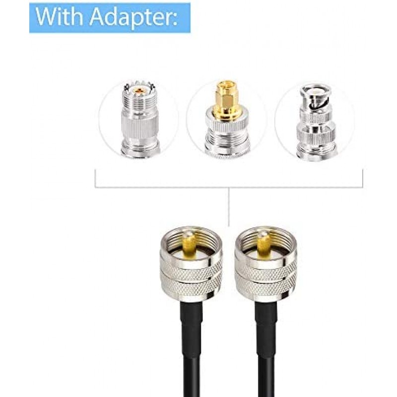 PL259 Cable UHF RF Coaxial Coax Cable 12inches + 3pcs Adapter Kit UHF Cable + SMA/BNC/PL259/SO239 Adapter Kit