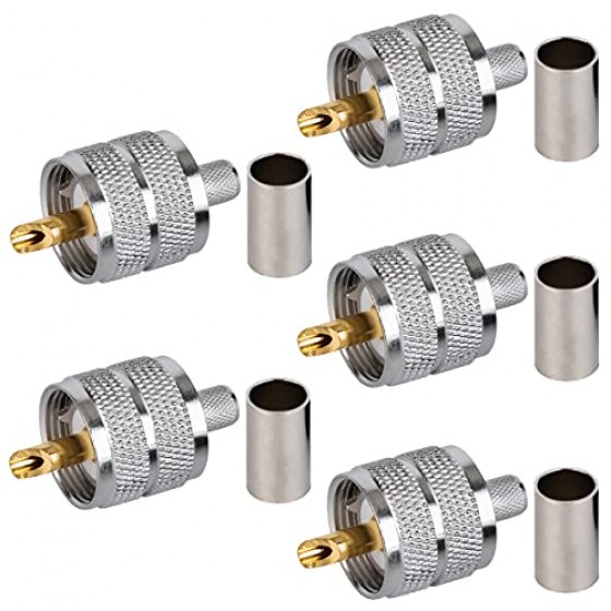 Pack of 5 UHF PL-259 PL259 Male Crimp Coax Connector Adapter RF Connector for ET38397, LMR240 Coax Cable Compatiable with Ham Radio