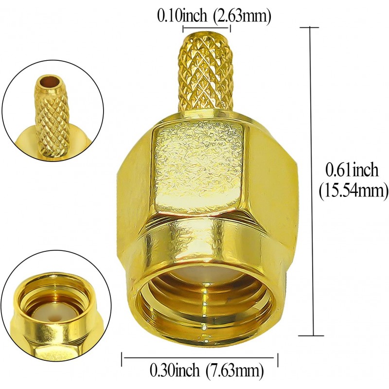 10 pcs of RP-SMA Male Plug Crimp Connector