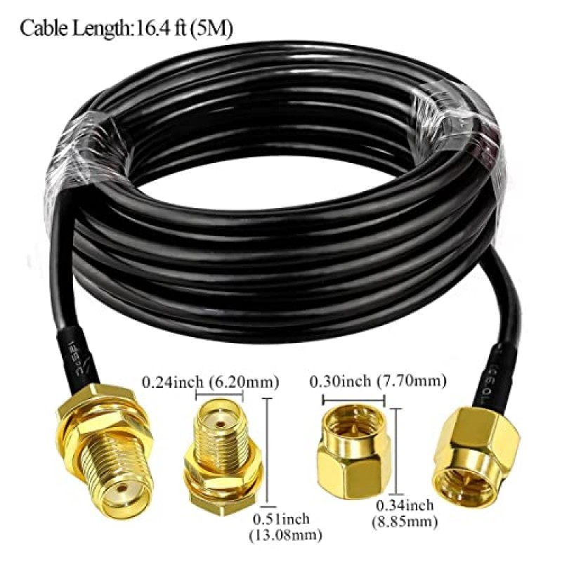 • 1 pc of 16.4 ft (5M) SMA Male to SMA Female Coaxial Cable