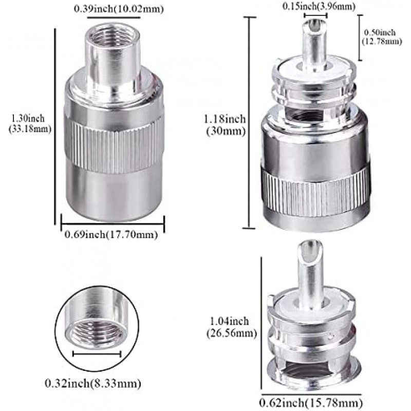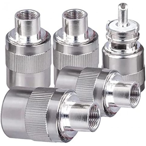 UHF Male Crimp Connector SO239 Plug Silver Converter for ET-RG58 ET-RG8 Coaxial Cable PL259 Male Coaxial Adapter Compatiable with CB Ham Radio 5Pack