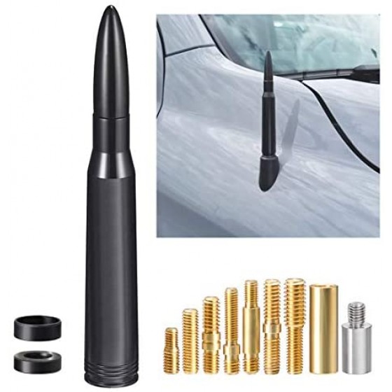 • Sleek Design, Optimized Bullet Shape Antenna Replacement for Off-road Vehicles and Trucks with Hood Mounted Antennas; Dimensions: 5.5 inch / 140mm Length; Package list: 1 x Antenna, 9 x Different Size Screw Bolts, 2 x Rubber Rings;