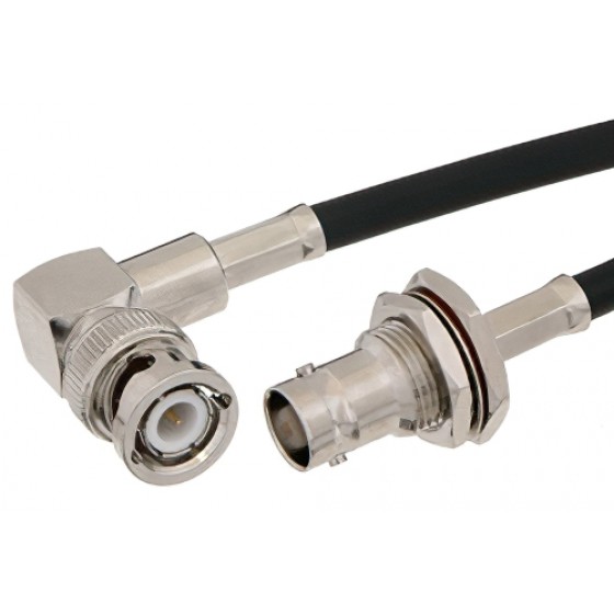 Ebeestock RF coax cable assembly is built with right angle BNC cable connection on one end and BNC bulkhead cable connection on the other. Our right angle BNC to BNC cable assemblies have a male gender on end 1 and female on end 2. This BNC to BNC cable is a male to female coax assembly, ET19053, can also be known as a right angle BNC plug to BNC jack cable assembly and will be shipped same-day as it is purchased.