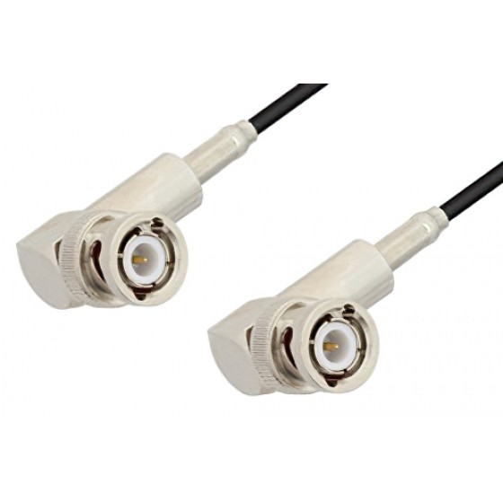 Ebeestock RF coax cable assembly is built with right angle BNC cable connection on one end and right angle BNC cable connection on the other. Our right angle BNC to right angle BNC cable assemblies have a male gender on end 1 and male on end 2. This BNC to BNC cable is a male to male coax assembly, ET19688, can also be known as a right angle BNC plug to right angle BNC plug cable assembly and will be shipped same-day as it is purchased.