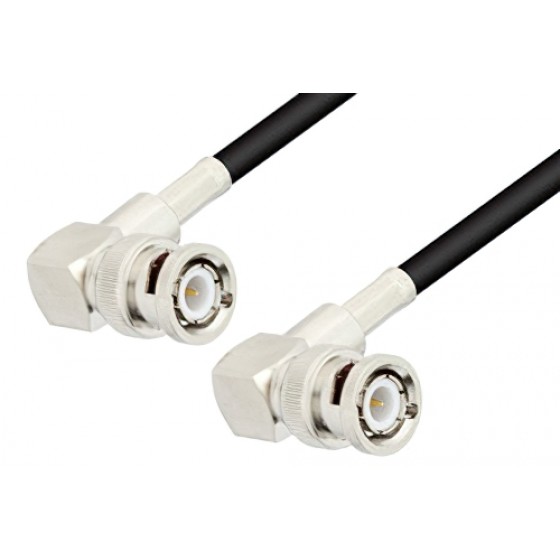 Ebeestock RF coax cable assembly is built with right angle BNC cable connection on one end and right angle BNC cable connection on the other. Our right angle BNC to right angle BNC cable assemblies have a male gender on end 1 and male on end 2. This BNC to BNC cable is a male to male coax assembly, ET19676, can also be known as a right angle BNC plug to right angle BNC plug cable assembly and will be shipped same-day as it is purchased.