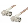 Ebeestock RF coax cable assembly is built with right angle BNC cable connection on one end and right angle BNC cable connection on the other. Our right angle BNC to right angle BNC cable assemblies have a male gender on end 1 and male on end 2. This BNC to BNC cable is a male to male coax assembly, ET19409, can also be known as a right angle BNC plug to right angle BNC plug cable assembly and will be shipped same-day as it is purchased.