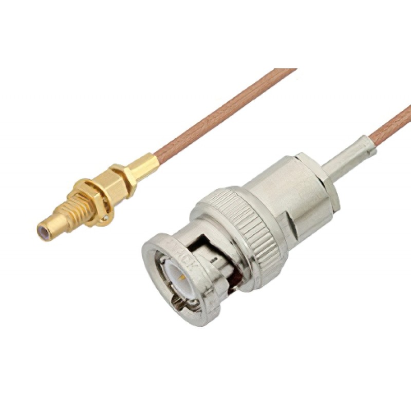 Ebeestock RF coax cable assembly is built with BNC cable connection on one end and SSMC bulkhead cable connection on the other. Our BNC to SSMC cable assemblies have a male gender on end 1 and jack on end 2. This BNC to SSMC cable is a male to jack coax assembly, ET19938, can also be known as a BNC plug to SSMC female cable assembly and will be shipped same-day as it is purchased.