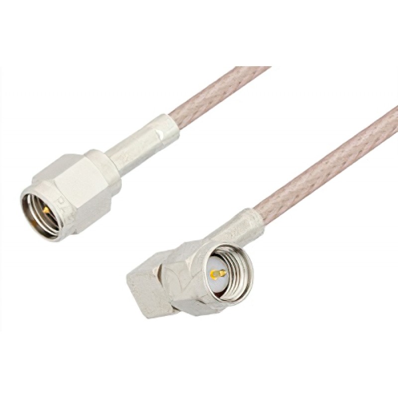 Ebeestock RF coax cable assembly is built with SMA cable connection on one end and right angle SMA cable connection on the other. Our SMA to right angle SMA cable assemblies have a male gender on end 1 and male on end 2. This SMA to SMA cable is a male to male coax assembly, ET36979, can also be known as a SMA plug to right angle SMA plug cable assembly and will be shipped same-day as it is purchased.