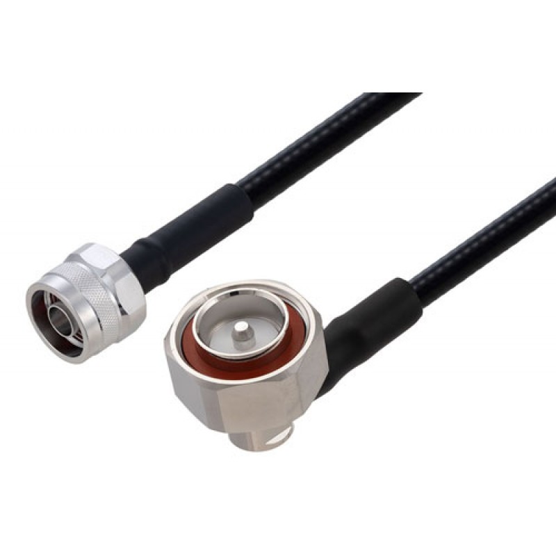 Ebeestock RF coax low PIM cable assembly is built with right angle 7/16 DIN cable connection on one end and type N cable connection on the other. Our low PIM right angle 7/16 DIN to type N cable assemblies have a male gender on end 1 and male on end 2. This 7/16 DIN to type N cable is a male to male coax assembly, ET16886, can also be known as a low PIM right angle 7/16 DIN plug to type N plug cable assembly and will be shipped same-day as it is purchased.