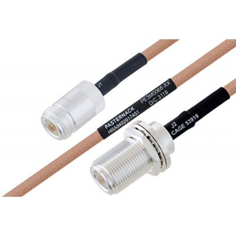 Ebeestock RF coax cable assembly is built with M39012/02-0503 type N cable connection on one end and M39012/03-0503 N type bulkhead cable connection on the other. Our M39012/02-0503 type N to M39012/03-0503 type N cable assemblies have a female gender on end 1 and female on end 2. This M39012/02-0503 N type to M39012/03-0503 type N cable is a female to female coax assembly, ET29367, can also be known as a MIL-DTL-17/MIL-C-17 M39012/02-0503 type N jack to M39012/03-0503 type N jack cable assembly and will be shipped same-day as it is purchased.