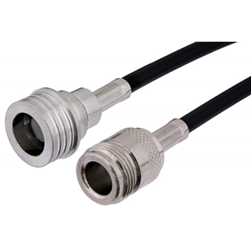 Ebeestock RF coax low loss cable assembly is built with type N cable connection on one end and QN cable connection on the other. Our low loss N type to QN cable assemblies have a female gender on end 1 and male on end 2. This type N to QN cable is a female to male coax assembly, ET28042, can also be known as a low loss type N jack to QN plug cable assembly and will be shipped same-day as it is purchased.