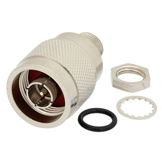 N Male Bulkhead Mount Connector Solder Attachment Solder Cup Terminal 350 inch D Hole