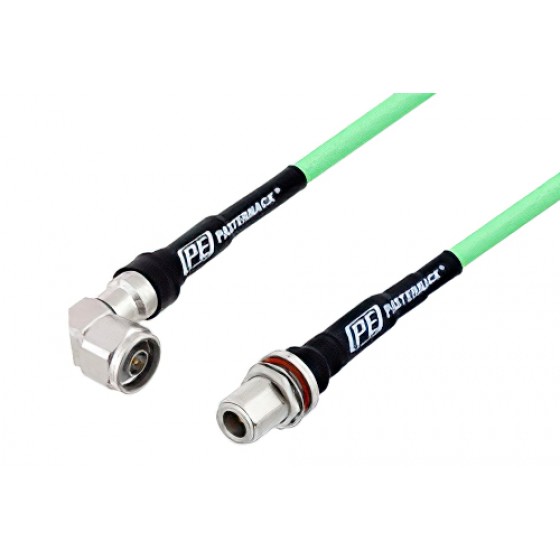 Ebeestock RF coax low loss test cable assembly is built with right angle type N cable connection on one end and type N bulkhead cable connection on the other. Our low loss test right angle type N to N type cable assemblies have a male gender on end 1 and female on end 2. This N type to type N cable is a male to female coax assembly, ET28536, can also be known as a low loss test right angle type N plug to type N jack cable assembly and will be shipped same-day as it is purchased.
