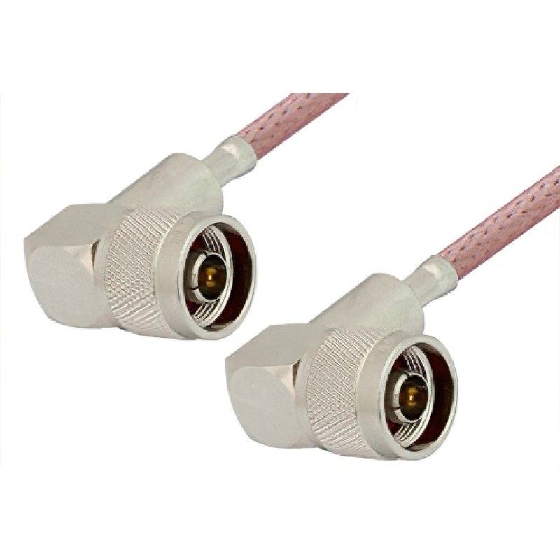 Ebeestock RF coax cable assembly is built with right angle N type cable connection on one end and right angle type N cable connection on the other. Our right angle type N to right angle N type cable assemblies have a male gender on end 1 and male on end 2. This type N to N type cable is a male to male coax assembly, ET27762, can also be known as a right angle type N plug to right angle N type plug cable assembly and will be shipped same-day as it is purchased.