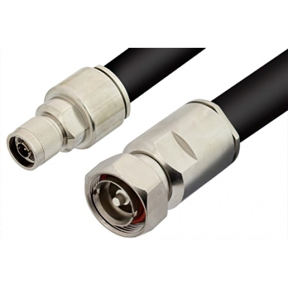 Ebeestock RF coax cable assembly is built with type N cable connection on one end and 7/16 DIN cable connection on the other. Our N type to 7/16 DIN cable assemblies have a male gender on end 1 and male on end 2. This type N to 7/16 DIN cable is a male to male coax assembly, ET17349, can also be known as a N type plug to 7/16 DIN plug cable assembly and will be shipped same-day as it is purchased.