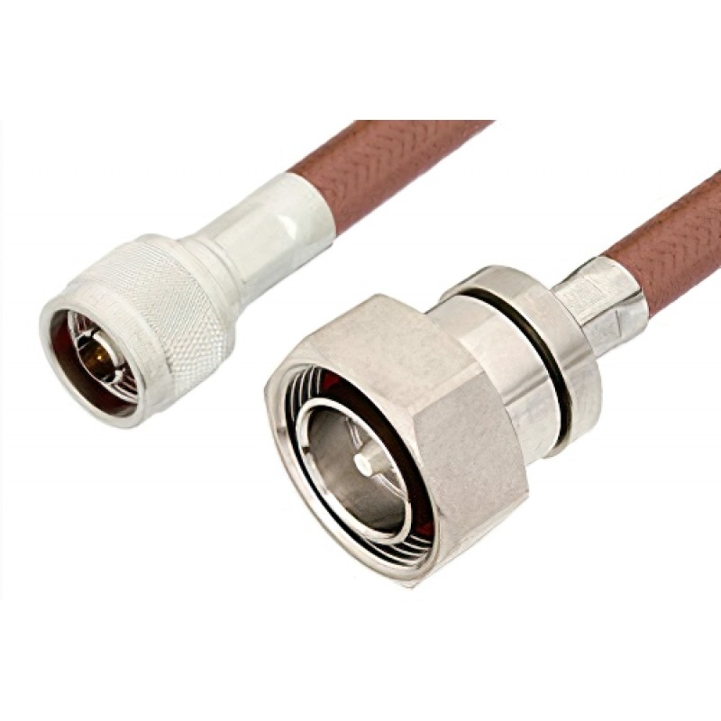 Ebeestock RF coax cable assembly is built with type N cable connection on one end and 7/16 DIN cable connection on the other. Our N type to 7/16 DIN cable assemblies have a male gender on end 1 and male on end 2. This type N to 7/16 DIN cable is a male to male coax assembly, ET17207, can also be known as a N type plug to 7/16 DIN plug cable assembly and will be shipped same-day as it is purchased.