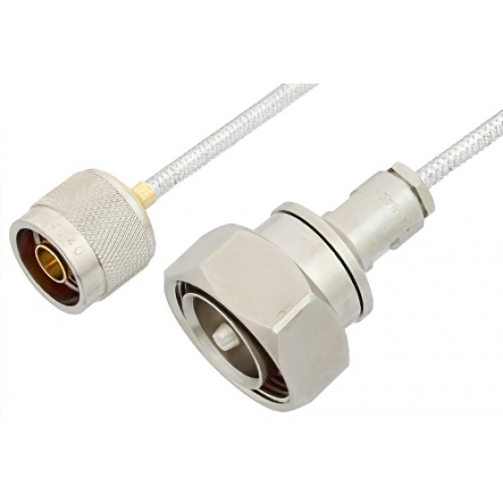 Ebeestock RF coax cable assembly is built with N type cable connection on one end and 7/16 DIN cable connection on the other. Our type N to 7/16 DIN cable assemblies have a male gender on end 1 and male on end 2. This type N to 7/16 DIN cable is a male to male coax assembly, ET17237, can also be known as a type N plug to 7/16 DIN plug cable assembly and will be shipped same-day as it is purchased.