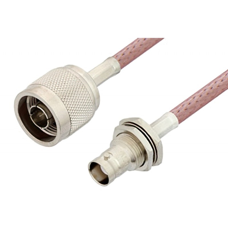 Ebeestock RF coax cable assembly is built with type N cable connection on one end and BNC bulkhead cable connection on the other. Our type N to BNC cable assemblies have a male gender on end 1 and female on end 2. This type N to BNC cable is a male to female coax assembly, ET20987, can also be known as a N type plug to BNC jack cable assembly and will be shipped same-day as it is purchased.