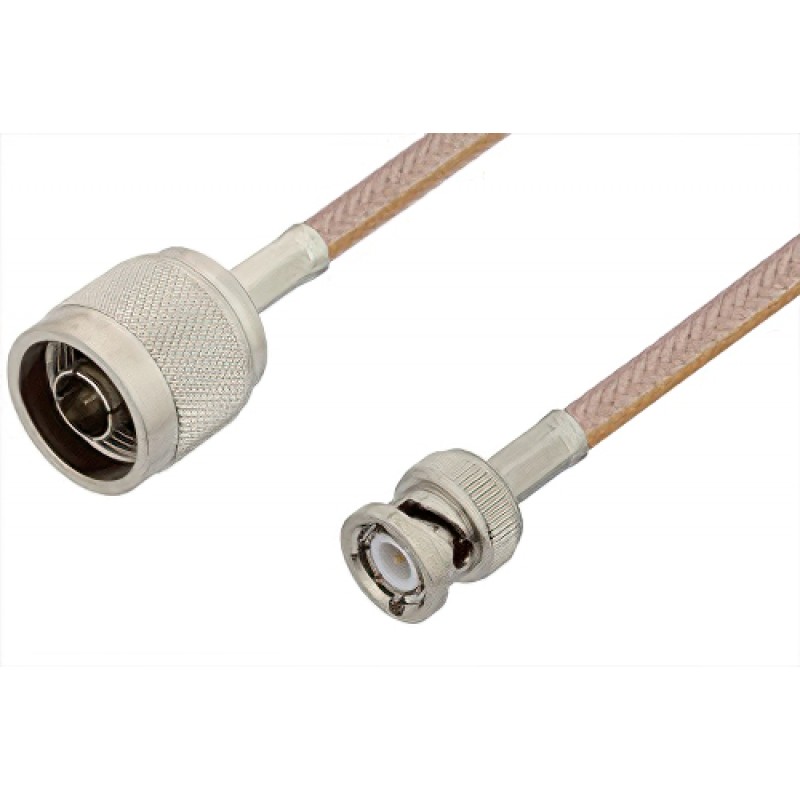 Ebeestock RF coax cable assembly is built with N type cable connection on one end and BNC cable connection on the other. Our type N to BNC cable assemblies have a male gender on end 1 and male on end 2. This type N to BNC cable is a male to male coax assembly, ET28101, can also be known as a type N plug to BNC plug cable assembly and will be shipped same-day as it is purchased.