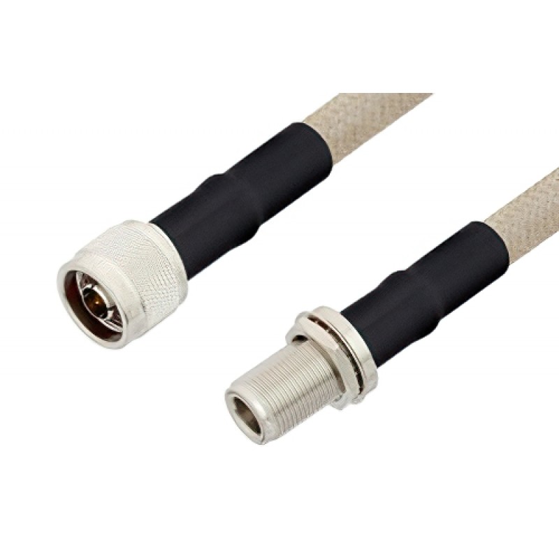 N type plug to type N jack bulkhead cable assembly is just one of more than 45,000 in-stock RF products available. Ebeestock is where to buy a high quality type N to N type cable assembly for quick shipment worldwide. Variations of type N cable assemblies can also be built and will ship same-day as well, search this website or contact us for assistance. High quality custom RF cable assembly products for microwave and millimeter wave radio transmitter receiver, antenna jumper, component inter-connection and more for RF test & measurement labs, rugged and MIL-STD designed military / defense, aerospace, telecom, phase stable, phase and delay matching, outdoor and harsh environment and other radio frequency applications can be manufactured. For all these reasons and more, Ebeestock is one of the best websites where to find and buy quality RF cable assemblies like this N male to N female bulkhead cable 12 inch length using ET-RG225 coax , LF solder.