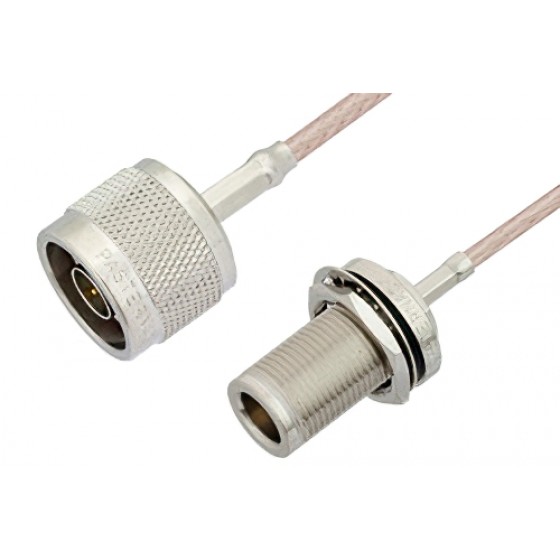 Ebeestock RF coax cable assembly is built with N type cable connection on one end and type N bulkhead cable connection on the other. Our N type to type N cable assemblies have a male gender on end 1 and female on end 2. This N type to type N cable is a male to female coax assembly, ET26754, can also be known as a type N plug to N type jack cable assembly and will be shipped same-day as it is purchased.