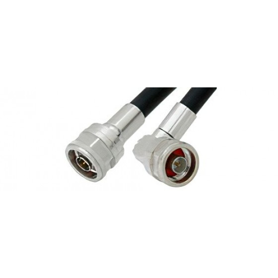 Ebeestock RF coax low loss cable assembly is built with type N cable connection on one end and right angle type N cable connection on the other. Our low loss type N to right angle N type cable assemblies have a male gender on end 1 and male on end 2. This type N to type N cable is a male to male coax assembly, ET27895, can also be known as a low loss N type plug to right angle type N plug cable assembly and will be shipped same-day as it is purchased.
