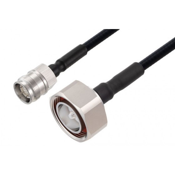 Ebeestock RF coax low PIM cable assembly is built with 4.3-10 cable connection on one end and 7/16 DIN cable connection on the other. Our low PIM 4.3-10 to 7/16 DIN cable assemblies have a female gender on end 1 and male on end 2. This 4.3-10 to 7/16 DIN cable is a female to male coax assembly, ET15765, can also be known as a low PIM 4.3-10 jack to 7/16 DIN plug cable assembly and will be shipped same-day as it is purchased.
