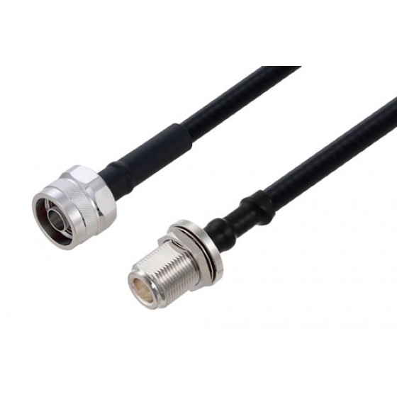 Ebeestock RF coax low PIM cable assembly is built with type N cable connection on one end and type N bulkhead cable connection on the other. Our low PIM N type to type N cable assemblies have a male gender on end 1 and female on end 2. This type N to type N cable is a male to female coax assembly, ET24562, can also be known as a low PIM N type plug to type N jack cable assembly and will be shipped same-day as it is purchased.