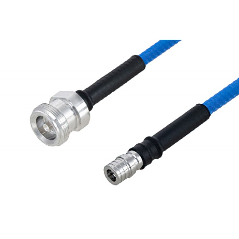 Ebeestock RF coax low PIM cable assembly is built with 4.1/9.5 mini DIN cable connection on one end and QMA cable connection on the other. Our low PIM 4.1/9.5 mini DIN to QMA cable assemblies have a female gender on end 1 and male on end 2. This 4.1/9.5 mini DIN to QMA cable is a female to male coax assembly, ET13921, can also be known as a low PIM 4.1/9.5 mini DIN jack to QMA plug cable assembly and will be shipped same-day as it is purchased.