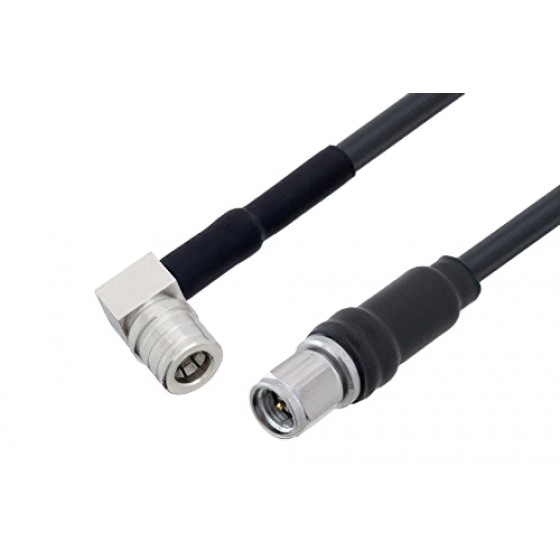 Ebeestock RF coax cable assembly is built with right angle QMA cable connection on one end and SMA cable connection on the other. Our right angle QMA to SMA cable assemblies have a male gender on end 1 and male on end 2. This QMA to SMA cable is a male to male coax assembly, ET29726, can also be known as a right angle QMA plug to SMA plug cable assembly and will be shipped same-day as it is purchased.