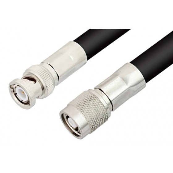 Ebeestock RF coax cable assembly is built with reverse polarity TNC cable connection on one end and BNC cable connection on the other. Our reverse polarity TNC to BNC cable assemblies have a male gender on end 1 and male on end 2. This reverse polarity TNC to BNC cable is a male to male coax assembly, ET20861, can also be known as a reverse polarity TNC plug to BNC plug cable assembly and will be shipped same-day as it is purchased.