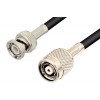 Ebeestock RF coax cable assembly is built with reverse polarity TNC cable connection on one end and BNC cable connection on the other. Our reverse polarity TNC to BNC cable assemblies have a male gender on end 1 and male on end 2. This reverse polarity TNC to BNC cable is a male to male coax assembly, ET21098, can also be known as a reverse polarity TNC plug to BNC plug cable assembly and will be shipped same-day as it is purchased.