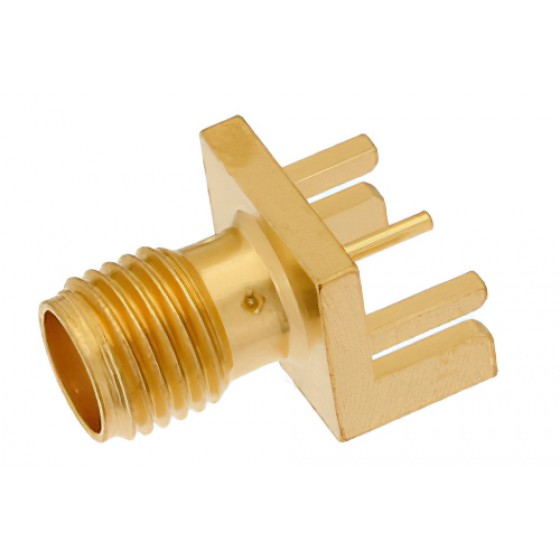 The Ebeestock SMA female pcb connector has a PTFE dielectric type. The Ebeestock SMA pcb connector has a brass body with gold over nickel plating. Our ET11234 SMA connector uses beryllium copper contact. This SMA female pcb RF connector is REACH compliant.