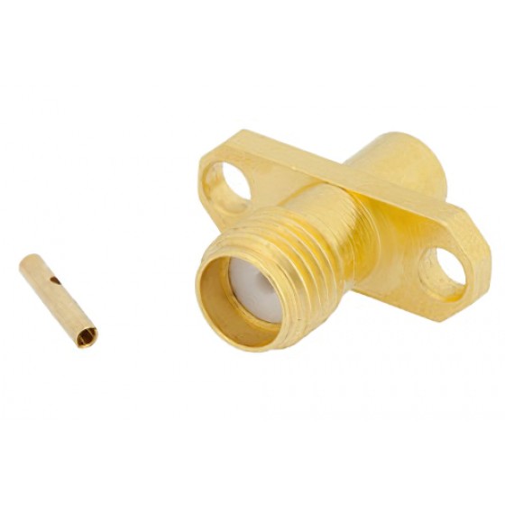 SMA Female Connector Solder Attachment 2 Hole Flange Mount for ET38338, ET38337, ET-RG402, .481 inch Hole Spacing